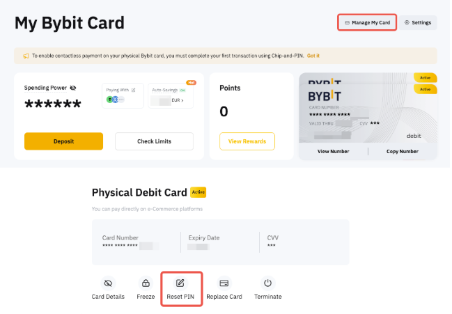 重置 Bybit Card PIN
