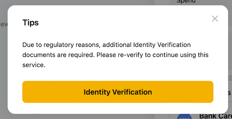 由于合规要求,透过 UAB Onlychain Fintech Limited 进行首次储值的使用者可能需要提供驾驶执照以外的其他身分证明文件。