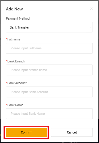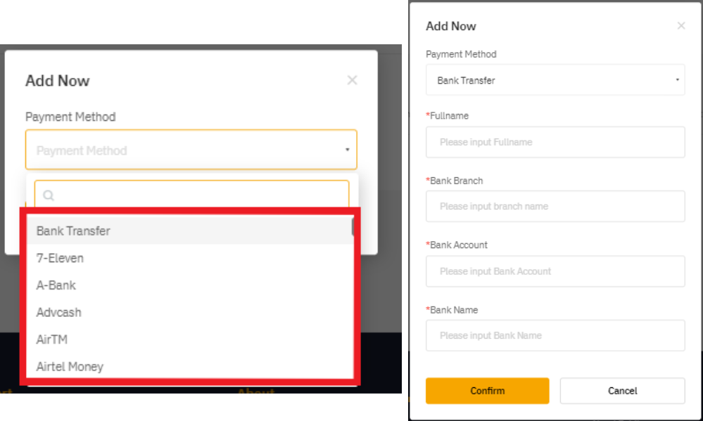 — 向广告方卖出币种时,要确定您选择的支付方式与所选广告方列出的支付方式相匹配。举个例子,如果广告方发布了银行转账的广告,请确定添加银行转账作为支付方式,以便成功下单。