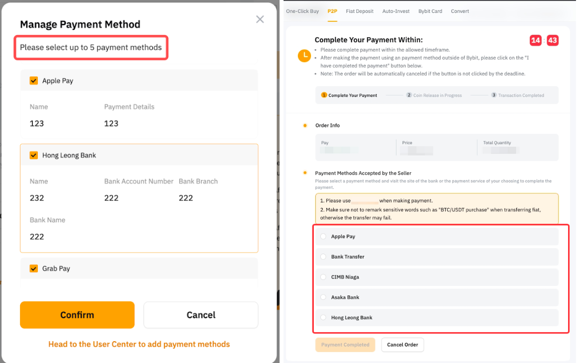 如何在 Bybit 上管理 P2P 交易的支付方式