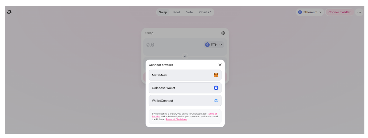 第 2 步:点击Uniswap页面右上角的连接钱包。如果没有要连接的Bybit钱包,您可以选择MetaMask来连接 Bybit钱包。在继续之前,请确保您已添加 Bybit 钱包扩充。