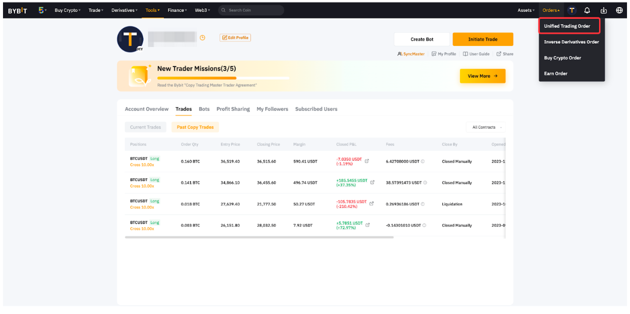两个选项卡上的未结盈亏均根据开仓均价计算。前往统一交易订单或衍生品订单页面,即可查看订单记录。欲了解详情,请参阅常见问题 — 跟单交易