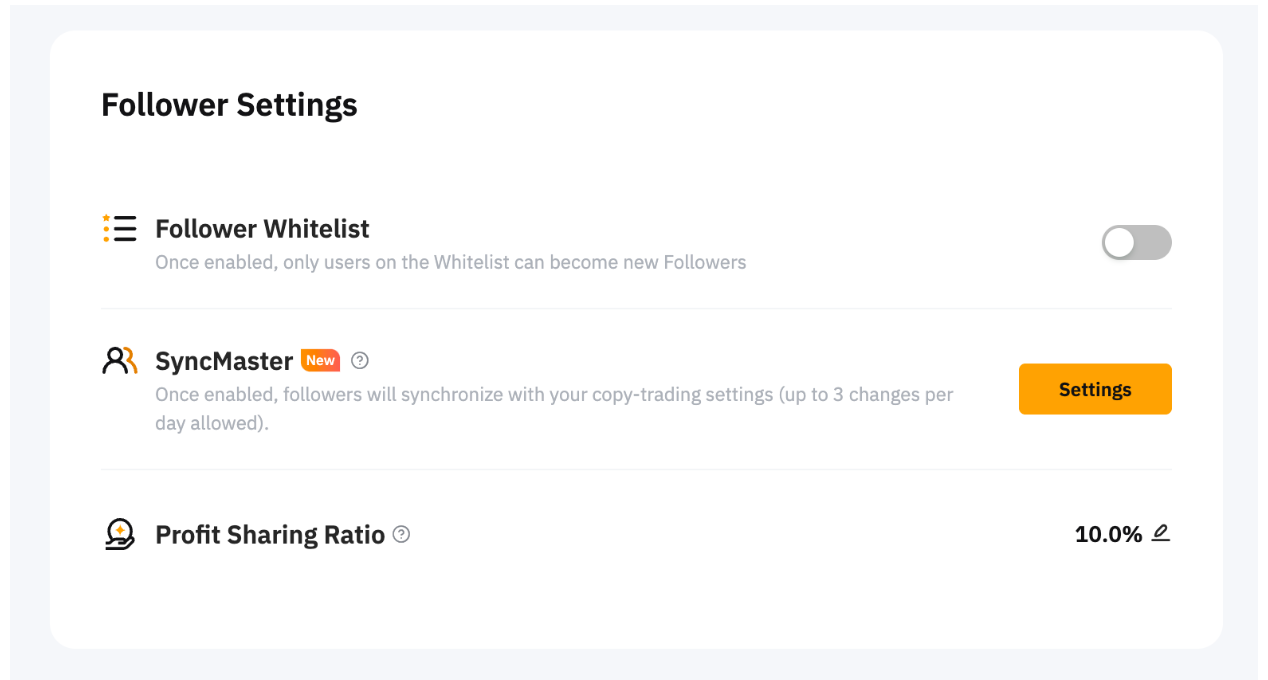 开启后,跟单用户会同步跟随您的交易设置(每天最多可修改 3 次)。欲了解详情,请点击此处。