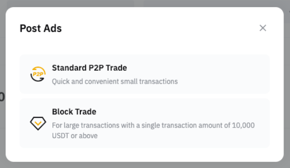 第 3 步:点击 P2P 交易或 P2P 大宗交易。欲了解发布广告的资格,请参阅本文。