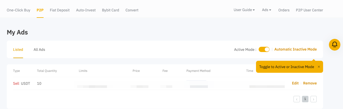 恭喜!您的广告现已成功列出。请记住,当广告处于活动模式时,广告商应保持在线上状态,以便及时回覆交易对手并及时进行谈判。要了解有关管理广告可见性的更多信息,请参阅本文。