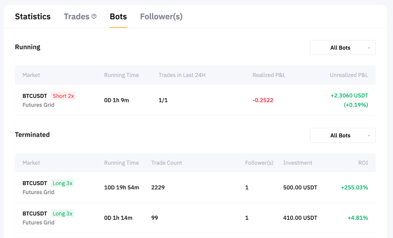 请注意,出于多种原因,跟单用户的机器人数量可能不会一直与交易达人的仓位一致。欲了解详情,请参阅此处。