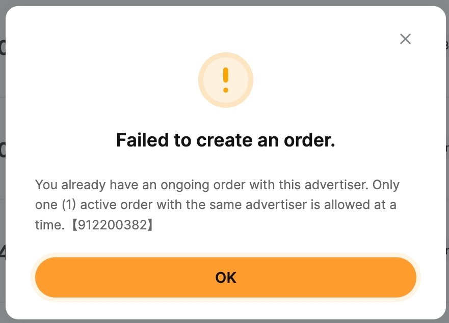 不可以。在任何特定时间,同一用户之间只允许存在一笔活跃的 P2P 订单。如果任一用户在现有订单仍在处理中时尝试与同一交易对手下达另一笔订单,则订单创建将失败。
