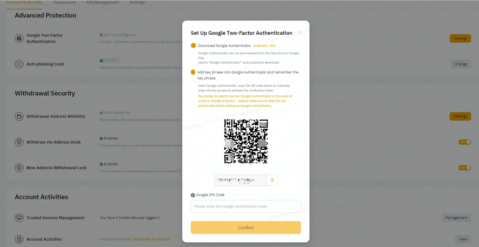 1.启用谷歌2FA身份验证