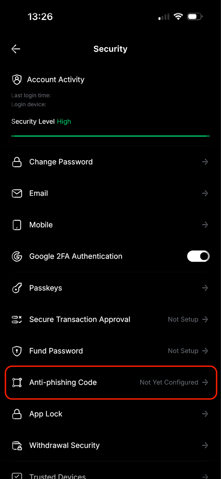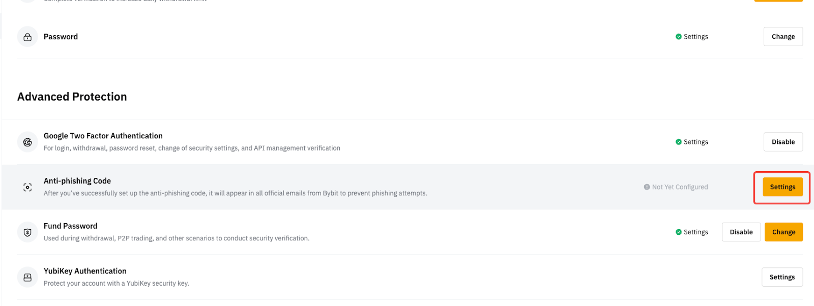 为防止网络钓鱼企图,Bybit 强烈建议通过网站或应用程序设置反网络钓鱼代码。如果您尚未设置您的反网络钓鱼代码,请转到您的帐户和安全页面,然后按照本指南进行操作。