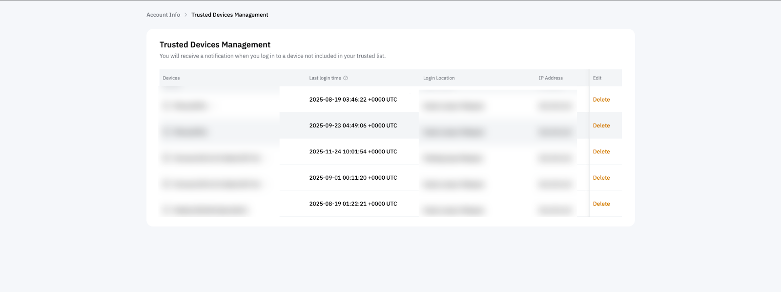 - 从可信设备列表中删除无法识别的设备,以防止进一步访问。