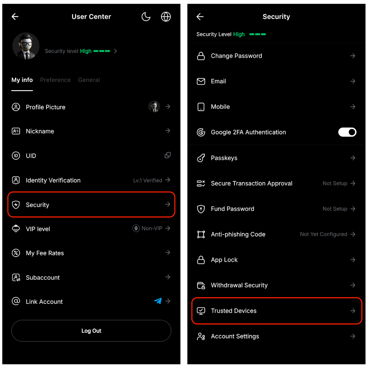 安全交易审批是一项安全功能,支持用户指定一个主设备用于验证和审批交易。该功能要求用户在完成高风险操作前进行二次确认,从而为账户提供多一重安全保障,既能有效防范未授权访问,又可确保用户更好地掌控每笔交易。请参阅此文章了解更多信息。