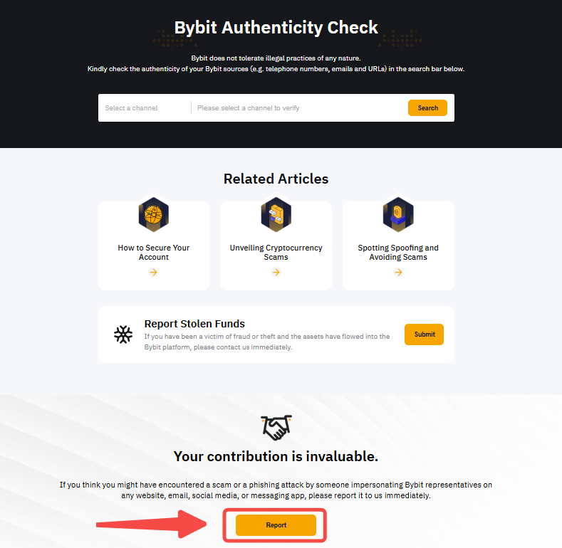 - 转到官方验证页面,单击“举报”,然后提交报告以进行进一步调查。