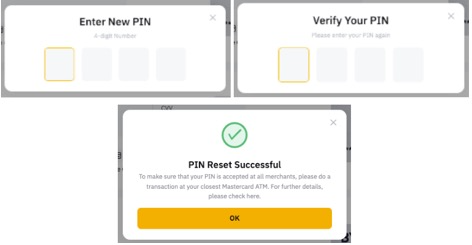 ملاحظات: كل بطاقة لديها رقم PIN خاص بها مما يعني أن تغيير رقم PIN للبطاقة الفعلية لن يغير رقم PIN للبطاقة الافتراضية. لإعادة تعيين رقم ال-PIN على بطاقتك الفعلية، ببساطة اتبع التعليمات أعلاه.