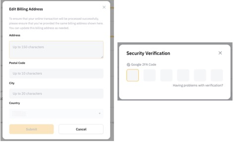 ○ إعداد عنوان الفواتير لبطاقة Bybit