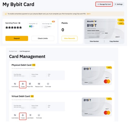 ○ تجميد / إلغاء تجميد بطاقة Bybit