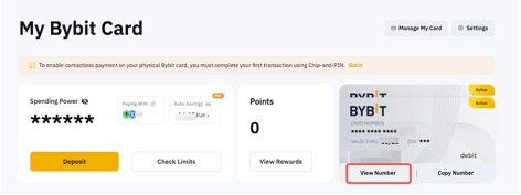 لعرض تفاصيل بطاقة Bybit الخاصة بك على الموقع، يمكنك الذهاب إلى بطاقتي Bybit وانقر على عرض الرقم.إذا كان لديك أكثر من بطاقة Bybit، ببساطة انقر على عرض البطاقة للتبديل بين البطاقات.