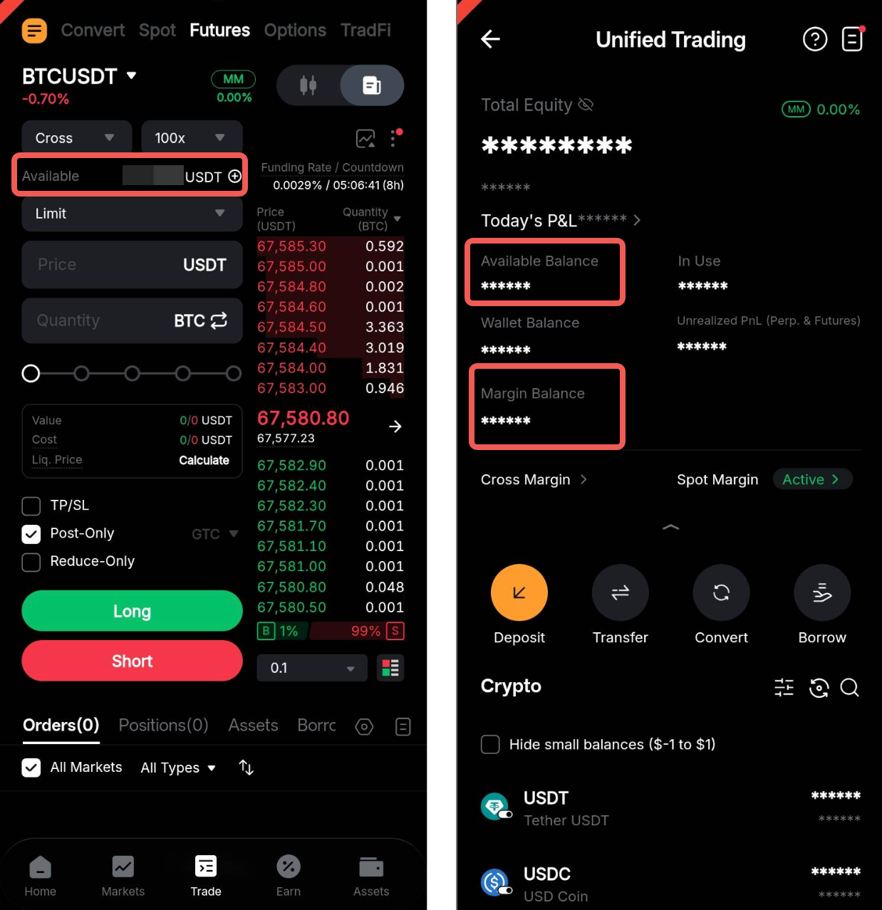 - موحد حساب التداول: لـ التداول في التداول الفوري، هامش العبور في التداول الفوري، قواعد العقود الآجلة المعكوسة & الانتهاء، عقد USDT الدائم & الانتهاء، USDC دائم، و عقود الخيارات USDT.