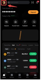 الخطوة 1: قم بتشغيل تطبيق Bybit. في الزاوية السفلية اليسرى، اختر الرئيسية.
