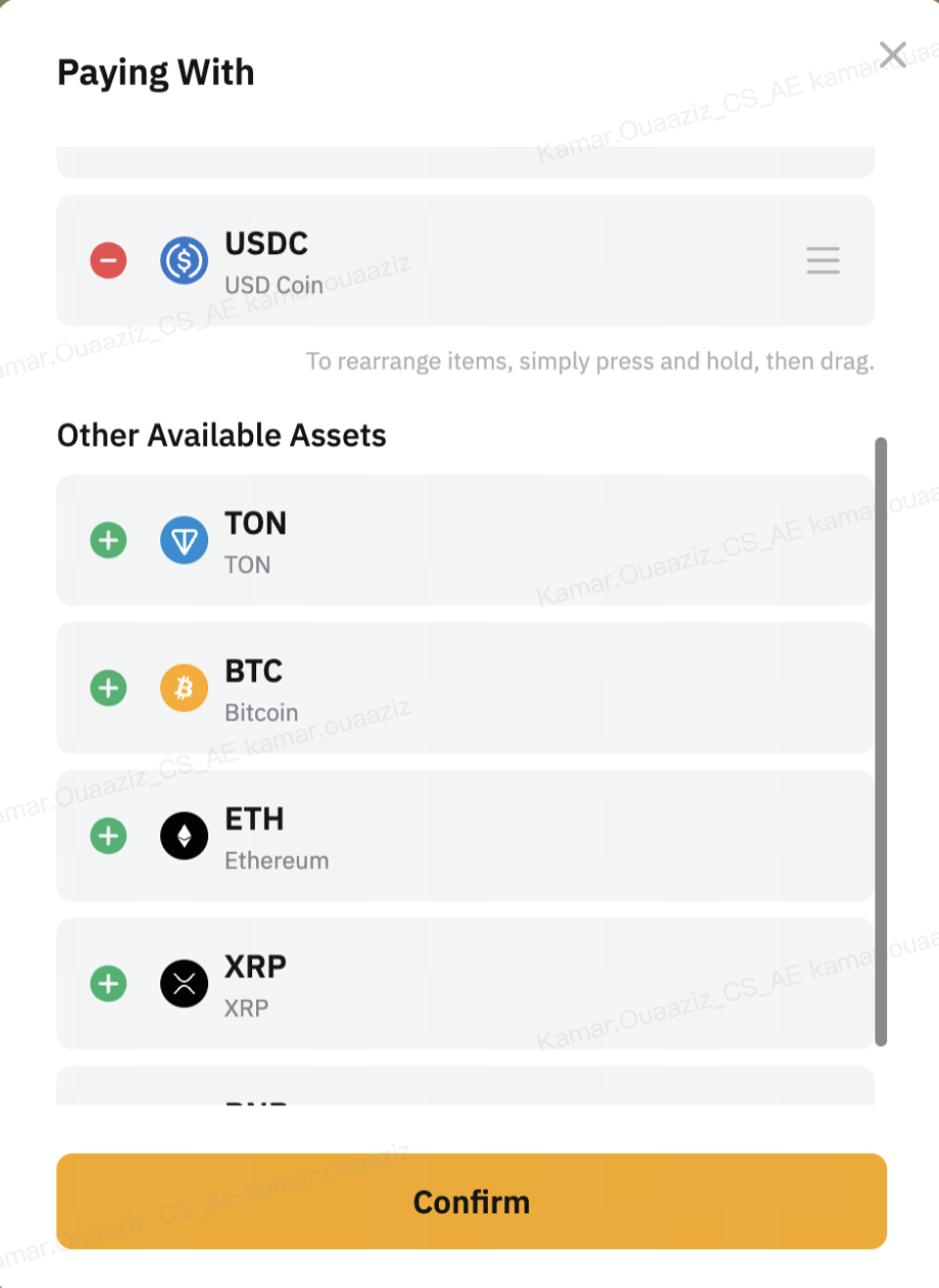 تحقق من قدرة الإنفاق الخاصة بك واختر أصل العملة المشفرة الخاص بالدفع