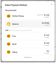 يتيح الشراء بنقرة واحدة للمستخدمين شراء وبيع العملات الرقمية باستخدام العملات الورقية عبر أي من طرق الدفع المدعومة لدينا: التداول P2P، الدفع ببطاقة البنك، دفع الطرف الثالث أو رصيد العملة الورقية.