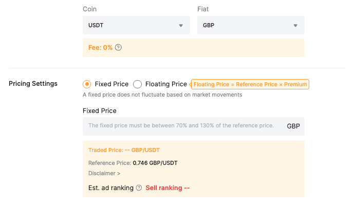 — TA can only post ads for fiat currencies that match their KYC. Posting fiat currencies that do not match your KYC will not be allowed.