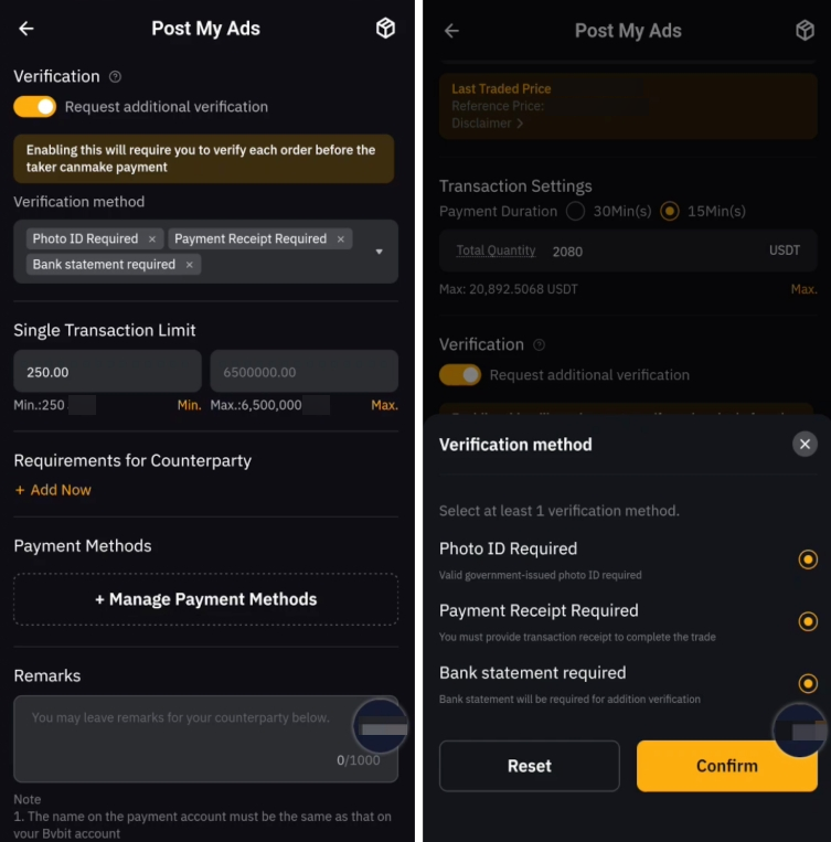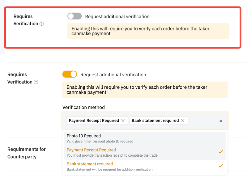 Yes, Verified Advertisers can set the verification requirement when posting an ad. You may find more information on How to Post a Trade Ad on P2P.