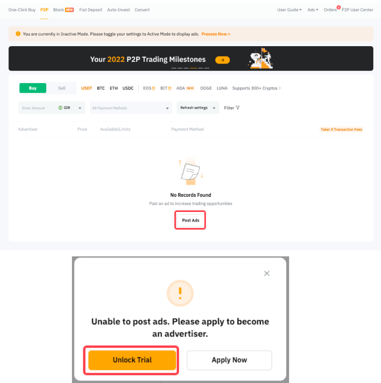 Please refer to How to Post a Trade Ad on P2P for more details.