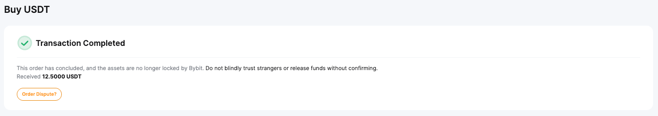 — Failing to transfer the funds to the Seller within the set timer or insufficient balance in your Bybit account will automatically cancel your order.