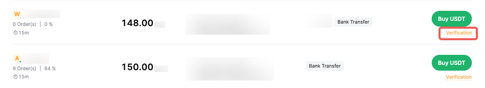 Step 3: Choose your preferred advertisement, and click on Buy USDT.