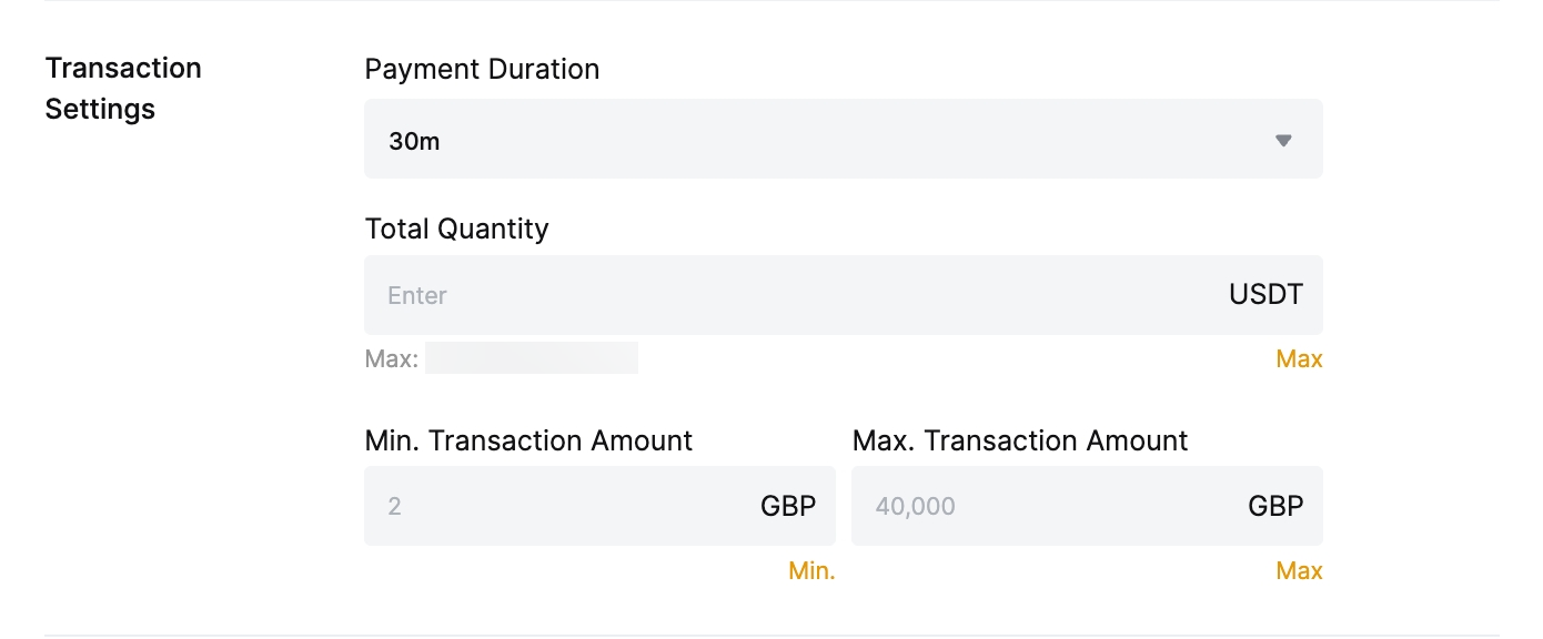 - To learn more about the minimum and maximum amounts of USDT that can be traded per ad, please refer to FAQ — P2P Advertisers.