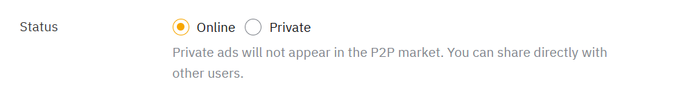 2. Non-Public: The ads will not be displayed on P2P advertisement page and is only accessible to traders with the QR code or the URL link.
