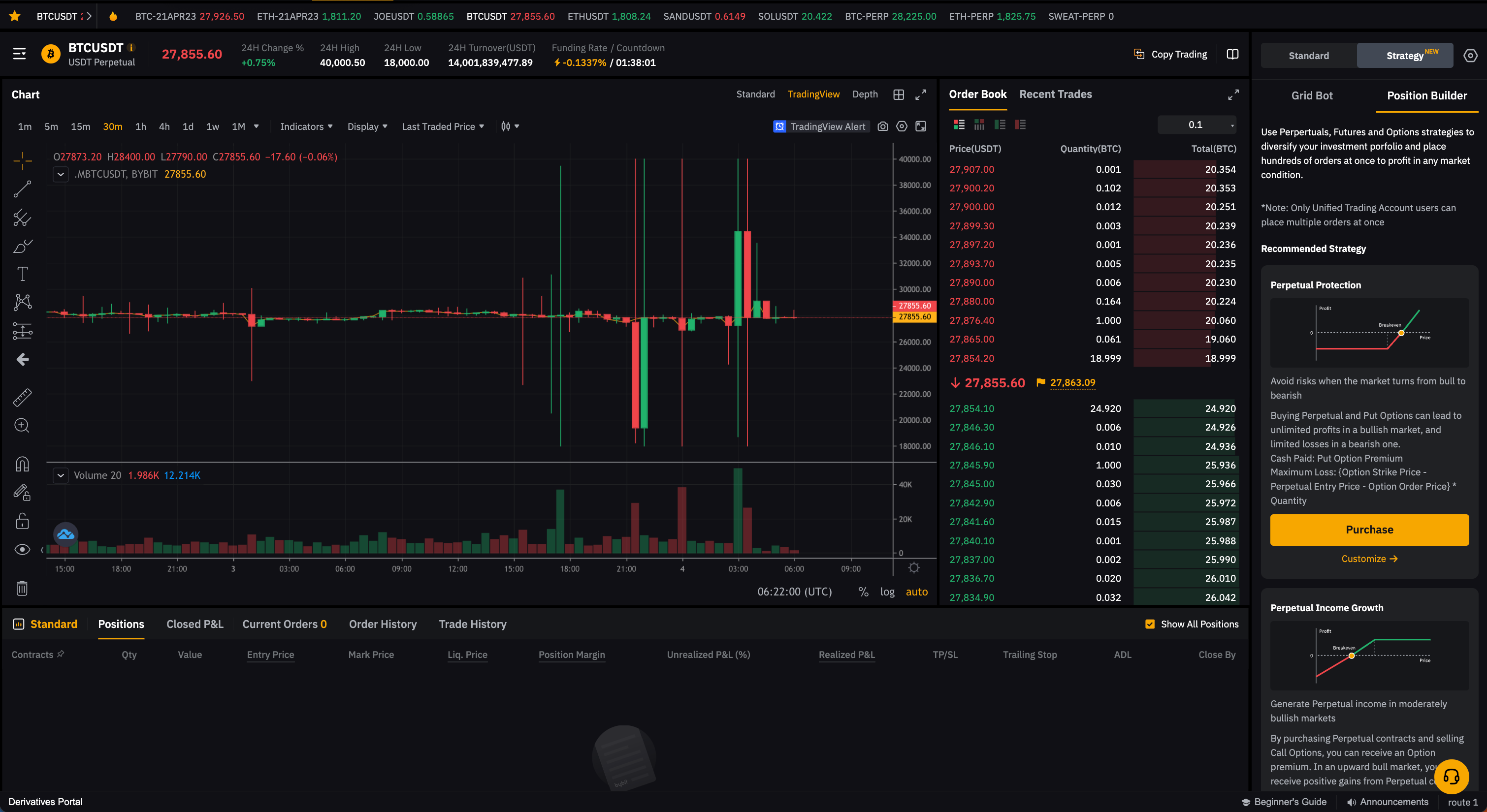 Position Builder is a powerful tool introduced by Bybit that allows traders to easily create complex investment portfolios using derivatives such as Perpetual, Futures, and Options contracts. This tool provides a wide range of contracts and customizable strategies, supports the submission of hundreds of orders at once, and helps you achieve portfolio diversification.