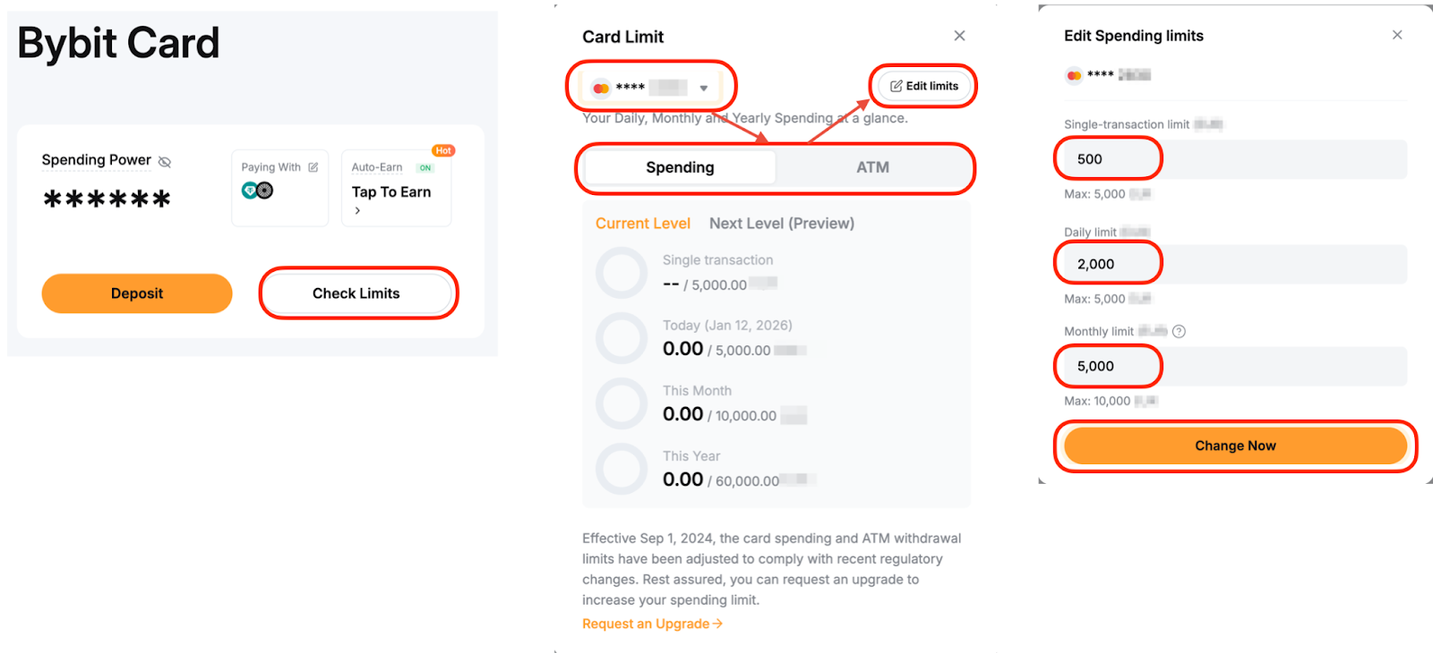 Change Daily/Monthly/Yearly limit for Spending/ATM Withdrawal