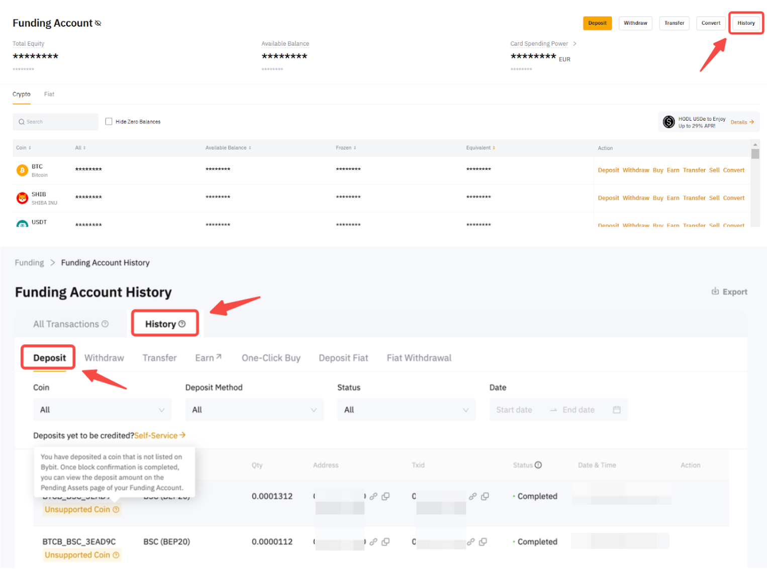 Step 1: Click on Funding AccountHistoryHistory → Deposit to find your deposit history.