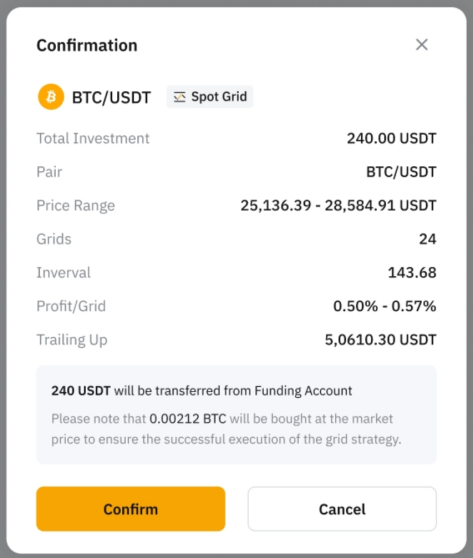 Step 4: In the Confirmation popup, review all your settings, including the Trailing Up option, and click Confirm.