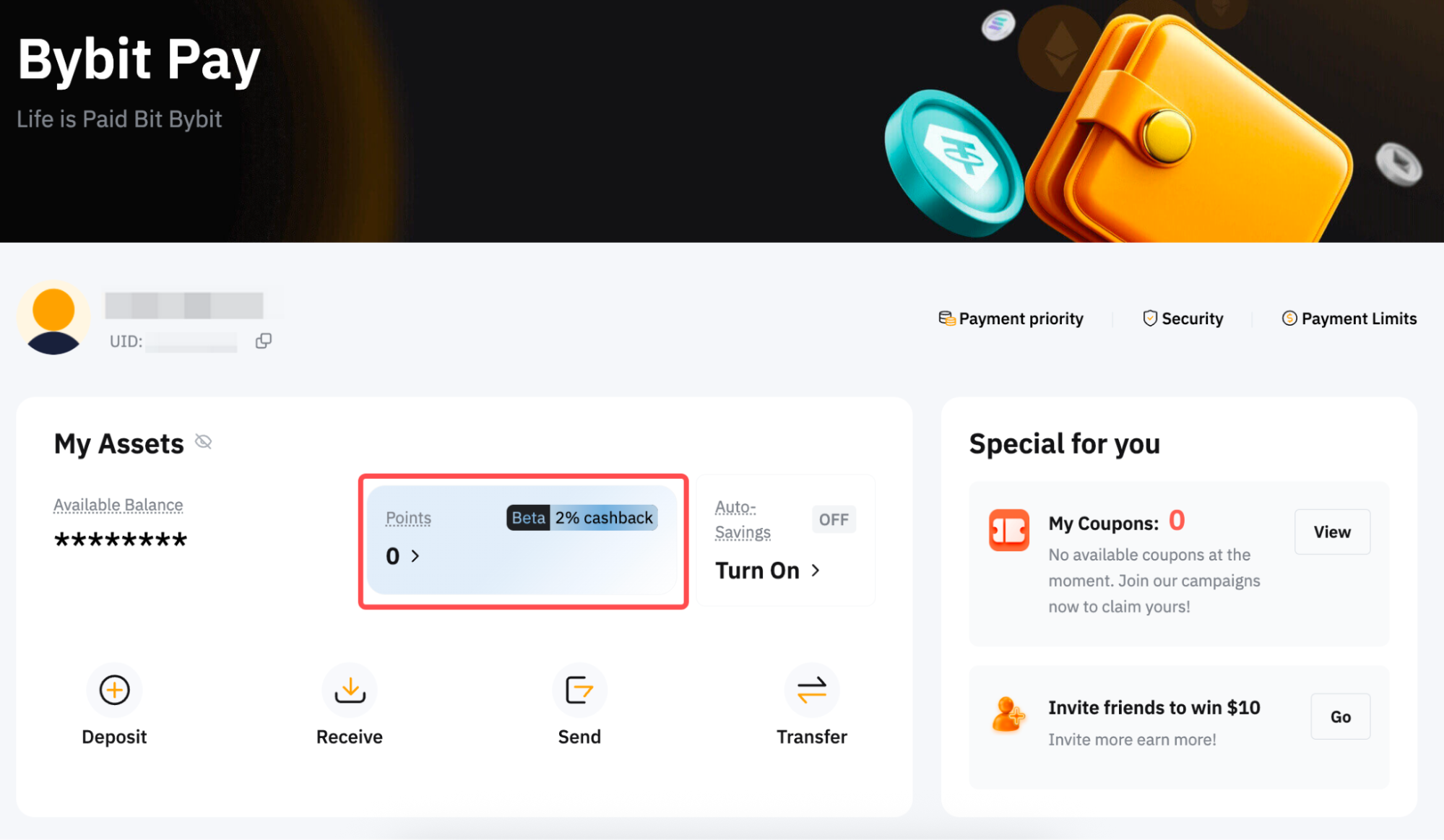 Here’s a step-by-step guide for activating Auto Cashback with Rewards Points From your Bybit Pay and view your past redemption records