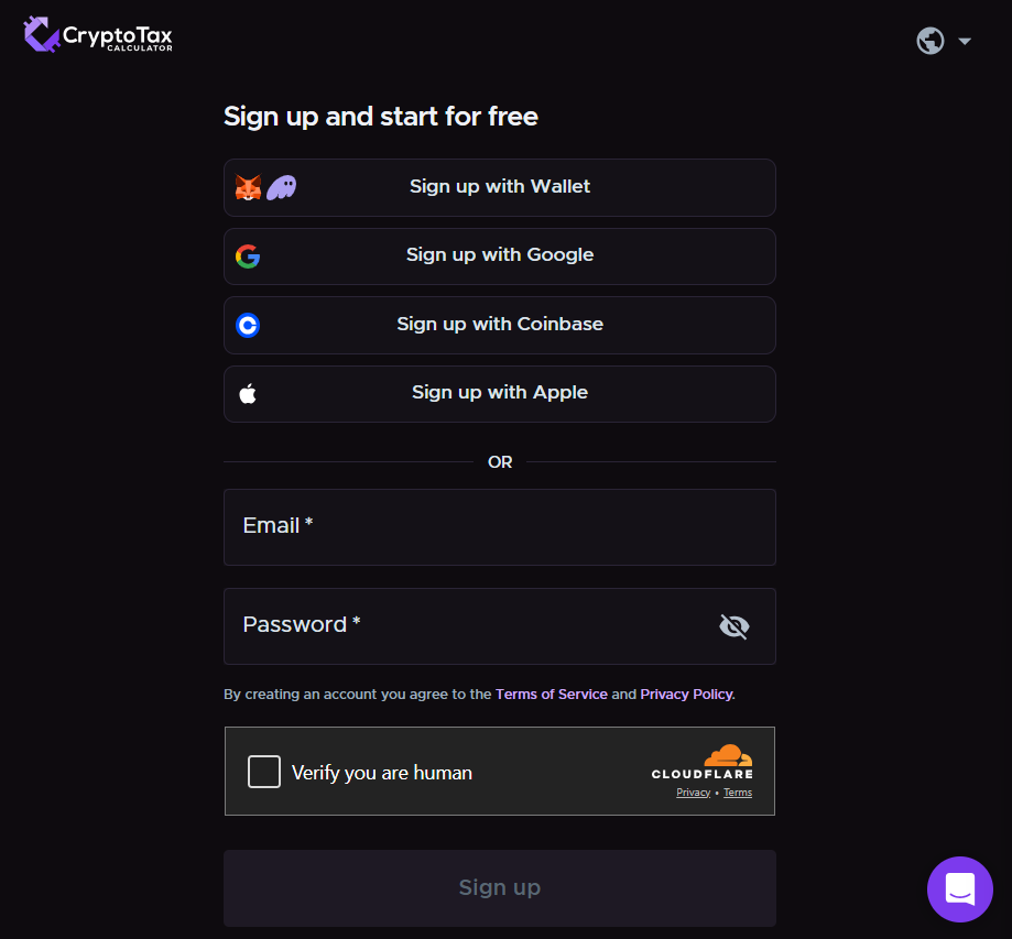 Step 1: Create an account on Crypto Tax Calculator, or log in if you already have one.