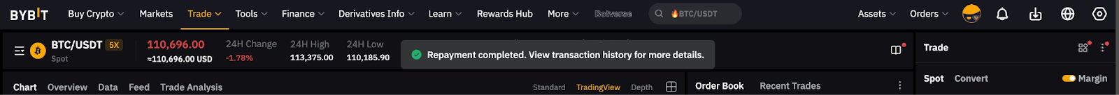 Here’s a step-by-step guide on how to make manual repayments in your Unified Trading Account (UTA) on Bybit. For more information on how borrowings can occur, please visit here.