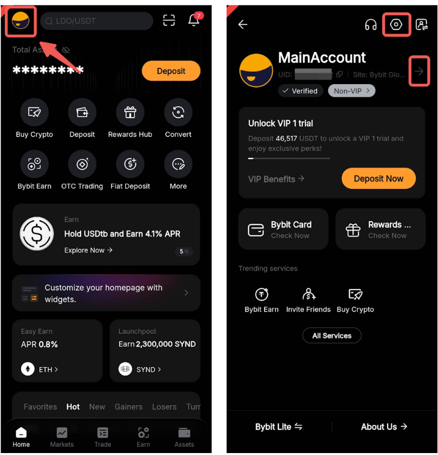 Step 1: Launch the Bybit App and tap your Profile icon in the top left corner to access your profile page. Next, click on the User Center page and tap Identify Verification.