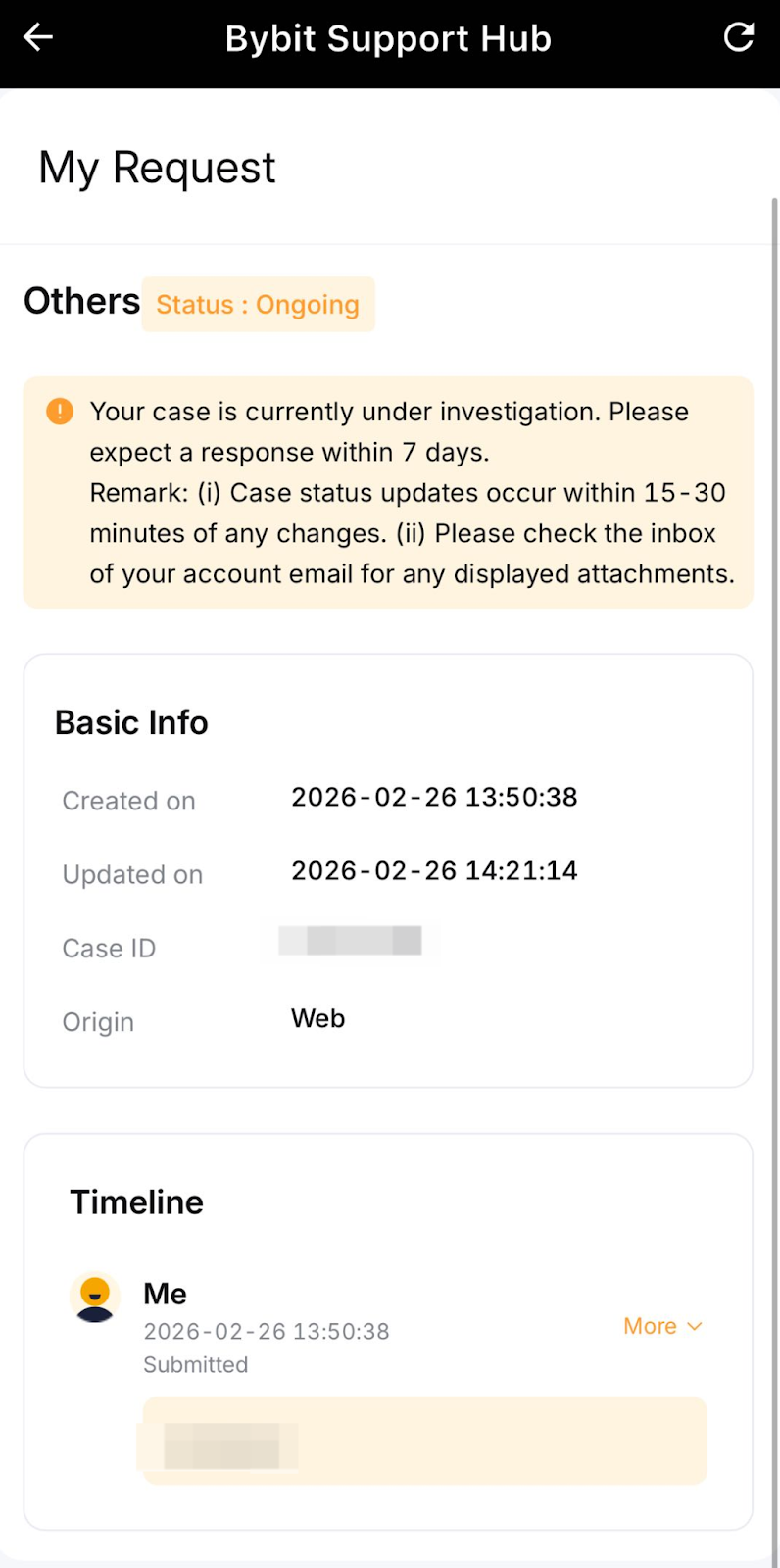 After submitting a support ticket, you can use the Bybit Support Hub to monitor its status in real-time without relying solely on email notifications. This centralized dashboard shows all your open cases, updates, and allows direct interaction with our support team.
