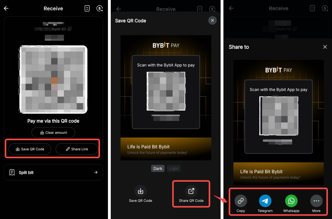- Save QR Code: Save the payment QR code to your album or share it directly through your preferred social channel.
