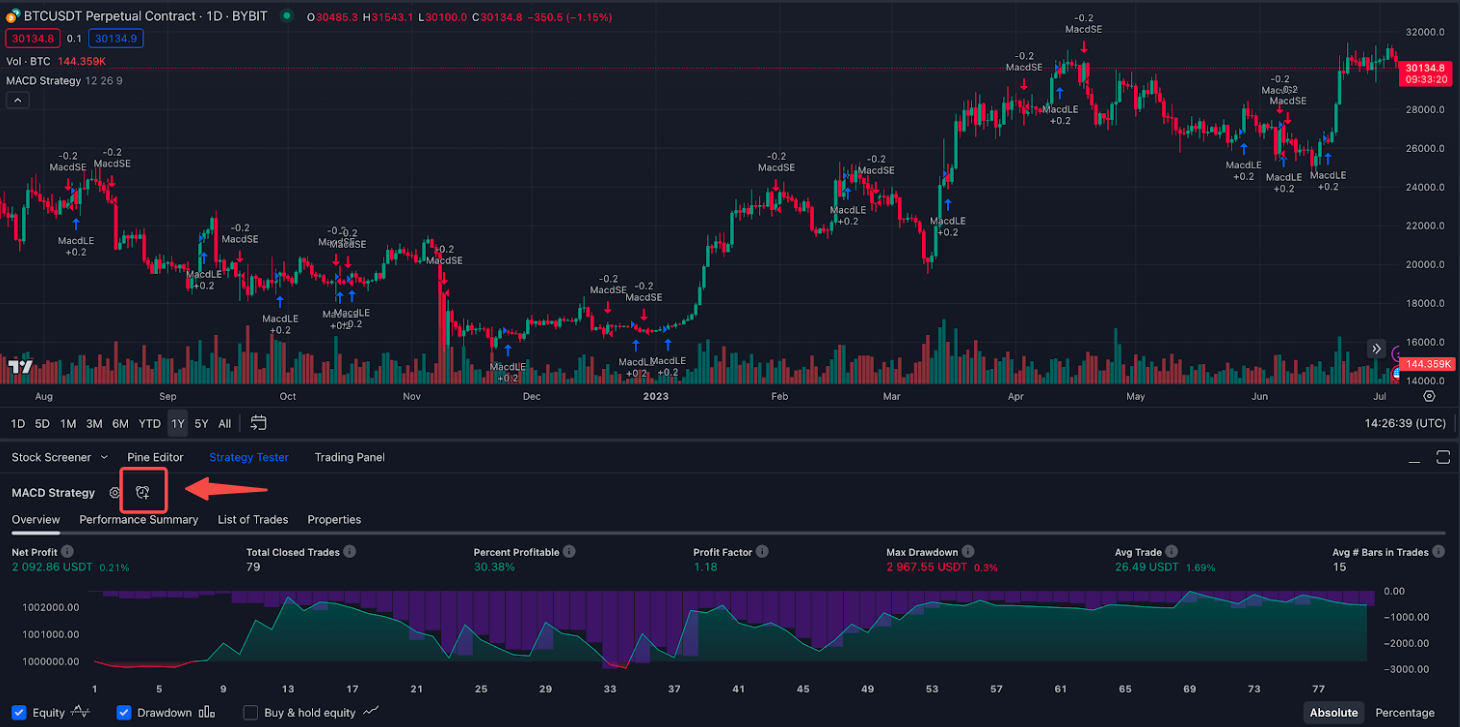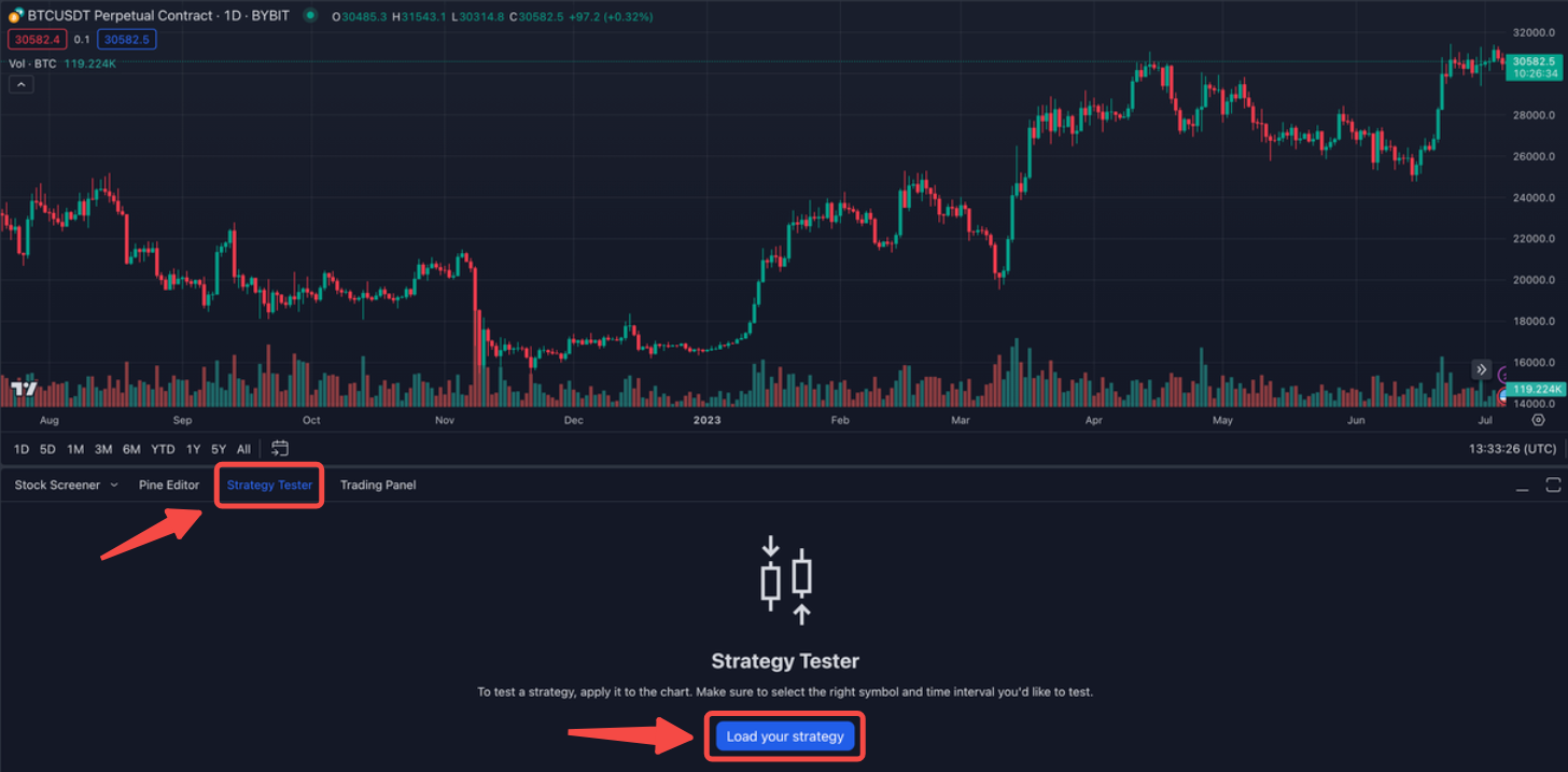 Step 2: On the TradingView Page, click on Strategy Tester to load your strategy.