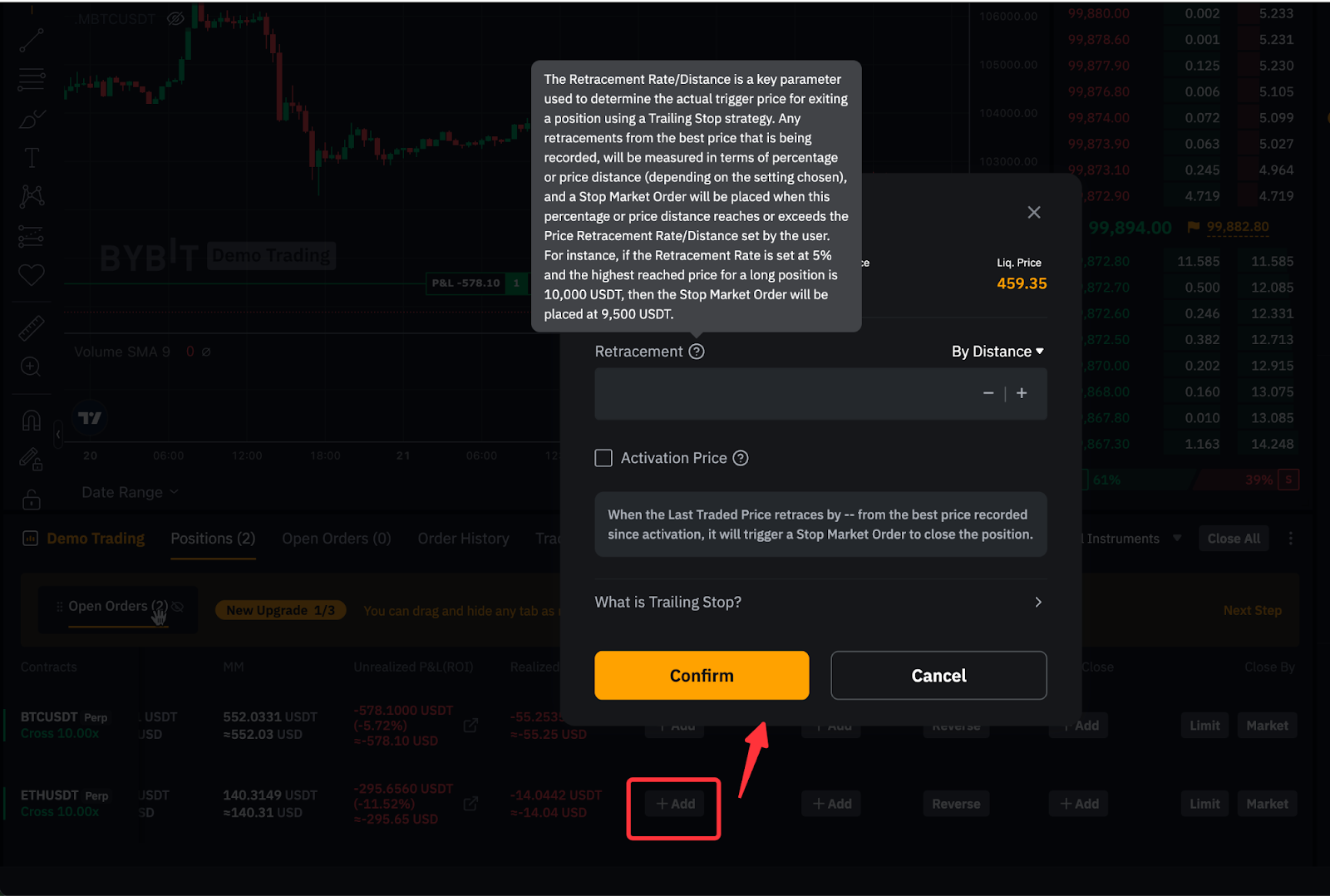 A Trailing Stop order dynamically adjusts the stop price with market movements, helping you lock in profits while limiting potential downside risk. For more details, refer to Trailing Stop Orders (Perpetual and Futures Trading).