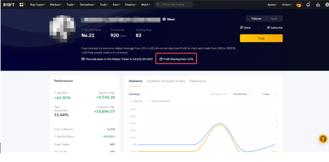 Sebagai Master Trader di Bybit, Anda dapat menerima bagian dari rasio profit bersih yang diperoleh Pengikut Anda. Begitu pula sebaliknya, sebagai Pengikut, Anda harus memberi bagian dari rasio profit dari posisi Anda kepada Master Trader.