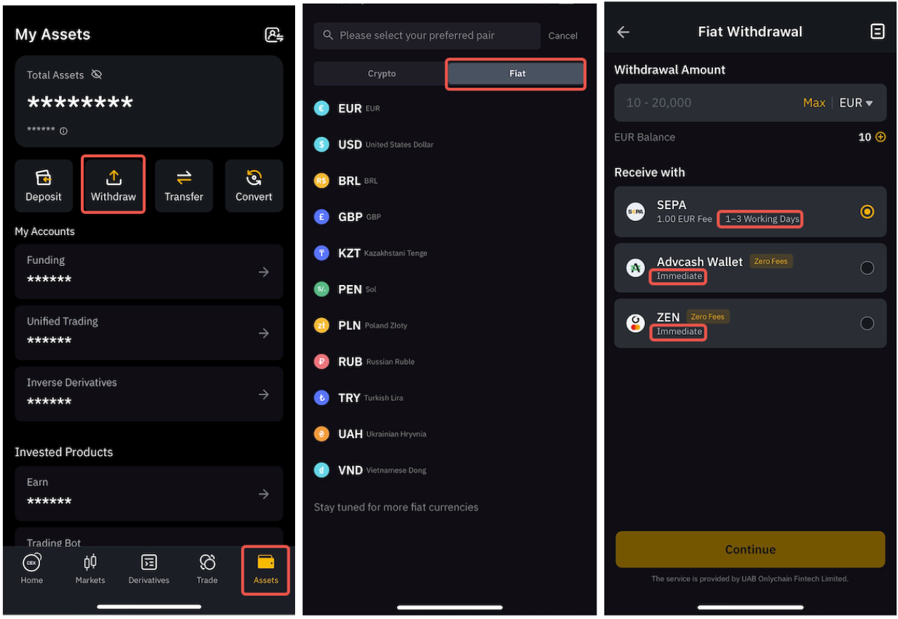 Untuk mempelajari selengkapnya tentang cara menarik mata uang fiat, silakan lihat artikel yang tersedia untuk setiap mata uang di sini.