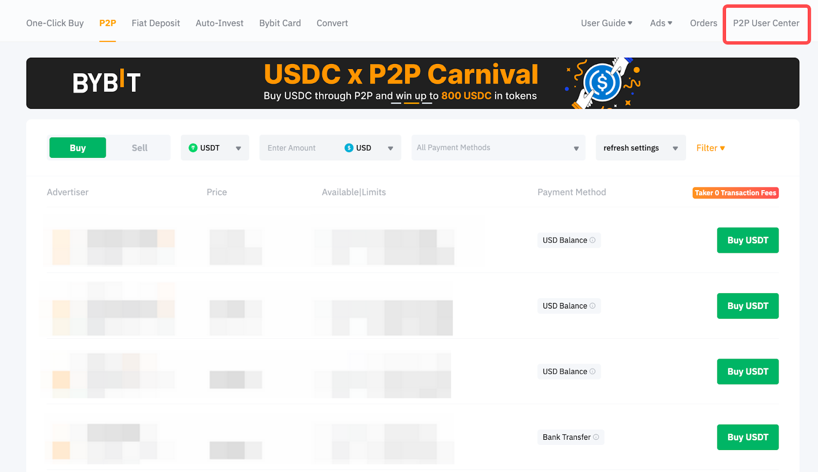 Langkah 2: Klik Pusat Pengguna P2P di sudut kanan atas laman untuk masuk ke profil Anda.