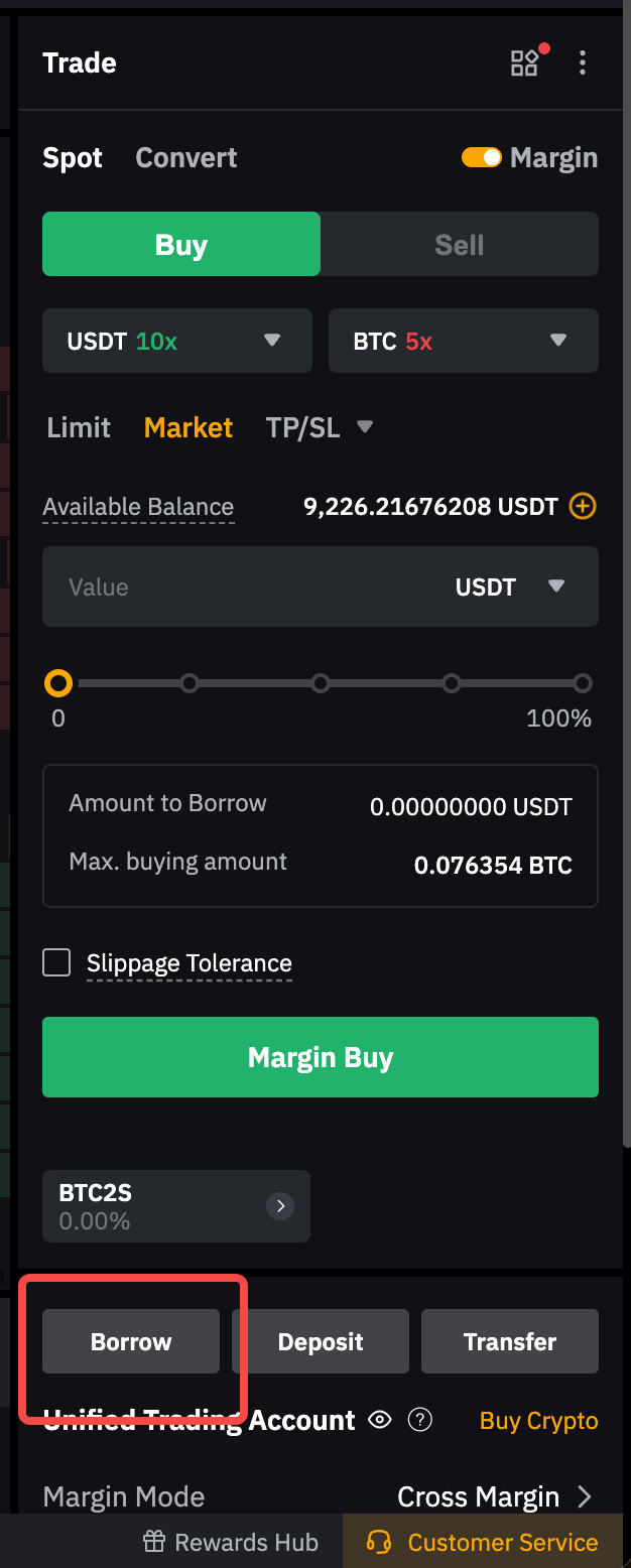 Pinjam langsung dari laman Perdagangan Margin Spot  atau laman aset Akun Perdagangan Terpadu (UTC).