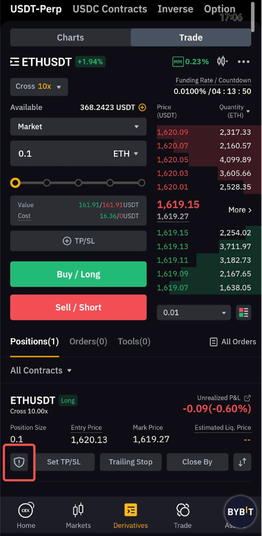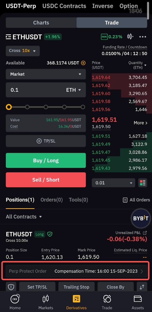 - Perlindungan Perp untuk saat ini hanya didukung di Aplikasi Bybit.
