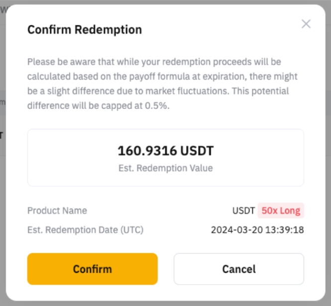 Langkah 2: Klik Tebus yang terdapat di sisi kanan paket Leverage Pintar Anda dan Anda akan melihat jendela sembul konfirmasi. Verifikasi detail penebusan sebelum mengeklik tombol Konfirmasi.