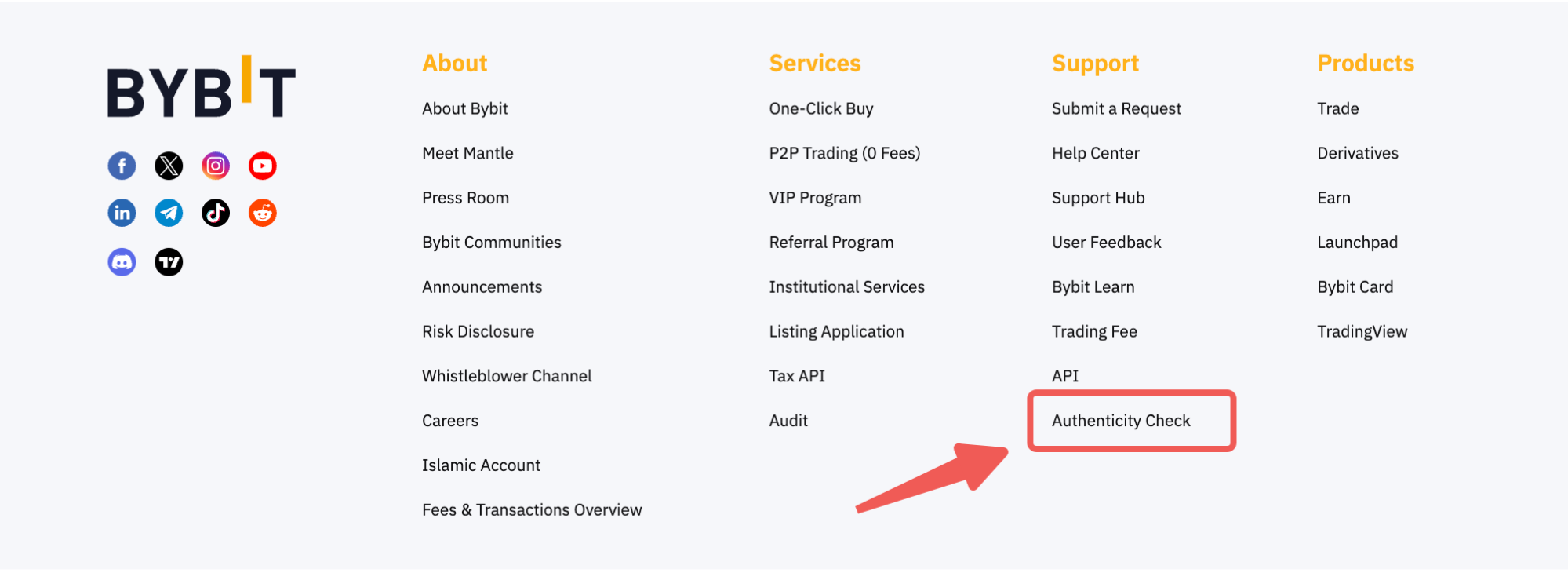 Fungsi ini dapat diakses dengan mudah di situs web dengan membuka menu utama Bybit atau menggulir ke halaman web bagian bawah.
